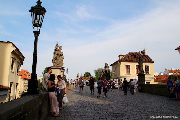 Tras un ratito de esparcimiento aquí, volvemos al Funicular y una vez en Újezd de nuevo, cogemos el tranvía 12 hasta la Plaza de la Ciudad Nueva. Callejeamos hasta el Puente de Carlos que volvemos a cruzar. Esta vez con menos prisas que ayer…