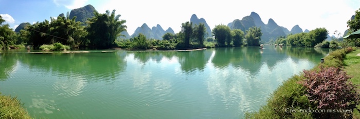 El crucero dura 4h y recorre las aguas del río Li entre paisajes kársticos. Es muy agradable y relajante. Además nos permite compartir charlas interesantes con las otras parejas que hemos conocido en el barco y en el autocar. Éstos ratitos de compartir con otras personas es de lo que más me gusta de los viajes por libre.