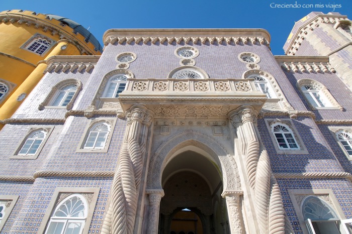 En 1838 el rey Fernando II compró las ruinas y sobre ellas, construyó una residencia de verano como obsequio a su esposa María II de Portugal. El Castillo combina diferentes estilos que van desde el neogótico hasta al neoislámico. Pasando por el neorenacimiento y una visión pseudo-manuelina que lo convierten en un lugar de lo más pintoresco. Accedemos al Palacio da Pena a través de una arcada de estilo morisco.