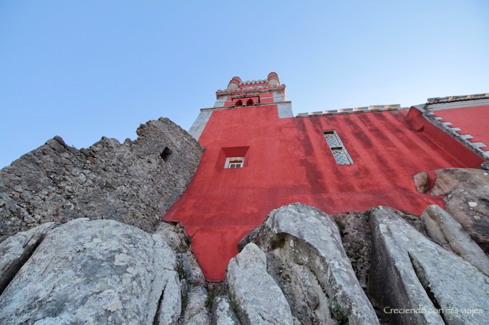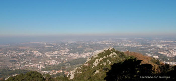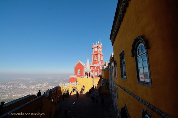 Decidimos comenzar el recorrido saliendo primero por un camino de ronda que bordea el Palacio junto al precipicio en el cuál está construido. Y es el que Palacio se alza en lo alto de la montaña, y muestra las vistas hacia el Castillo de los Moros y hacia el Atlántico. ¡Espectacular!