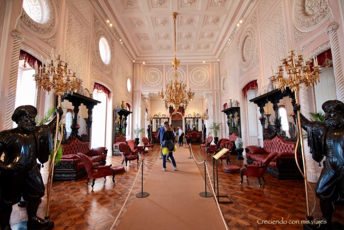 Después accedemos al interior del Palacio y recorremos las distintas estancias que lo conforman. Aunque lo realmente curioso del lugar es el colorido y los distintos estilos arquitectónicos, por dentro nos parece sorprendente también. Alucinamos con las vistas tan bonitas que tenían de los alrededores desde las ventanas del palacio.